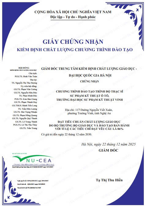 » Báo cáo tự đánh giá chương trình đào tạo ngành Sư phạm kỹ thuật Công nghệ ô tô_ Trình độ thạc sĩ